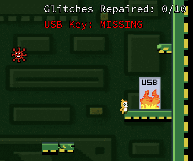 Restore system stability, answer CS questions correctly, and escape through the USB Port.